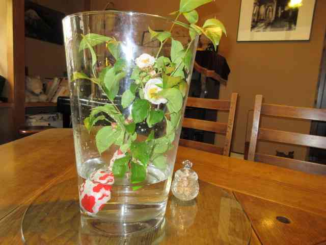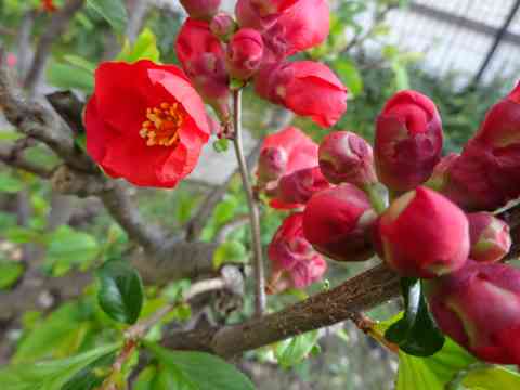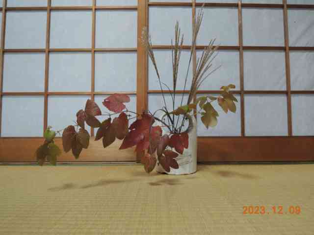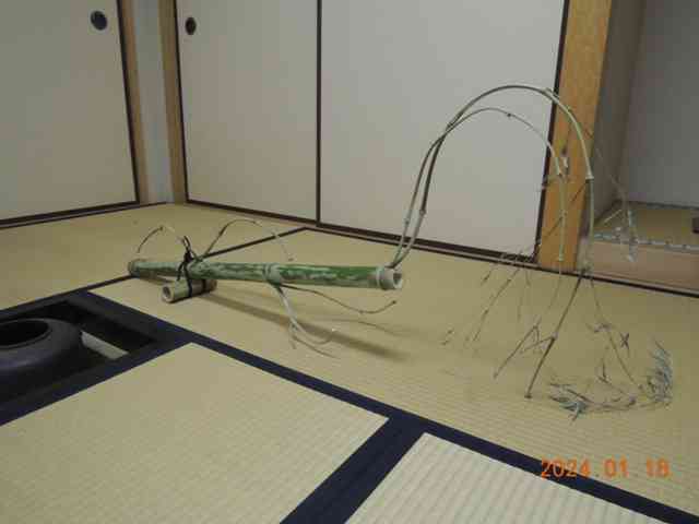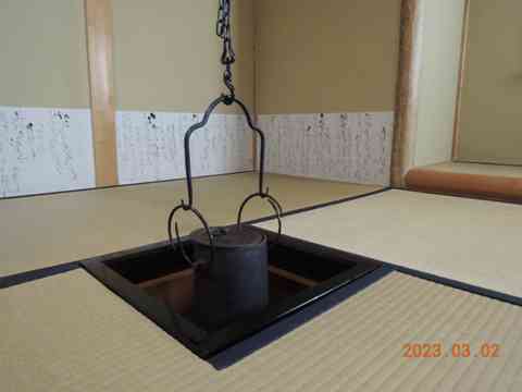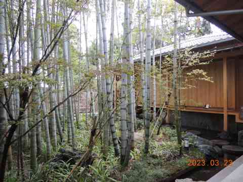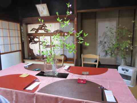 ガマズミの芽吹きの枝に茶事進む