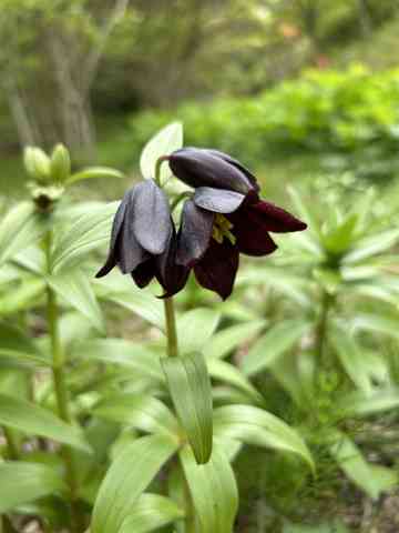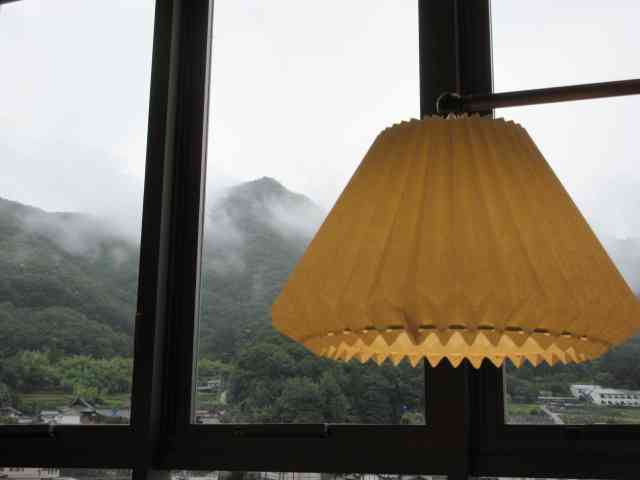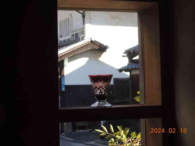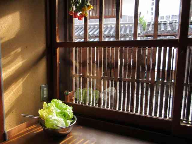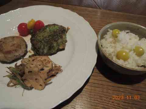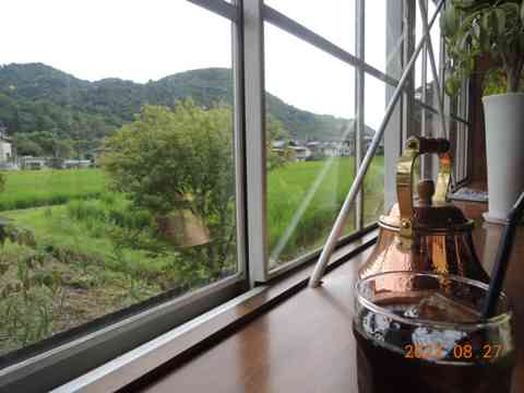 大玻璃に雑木林やむかご飯