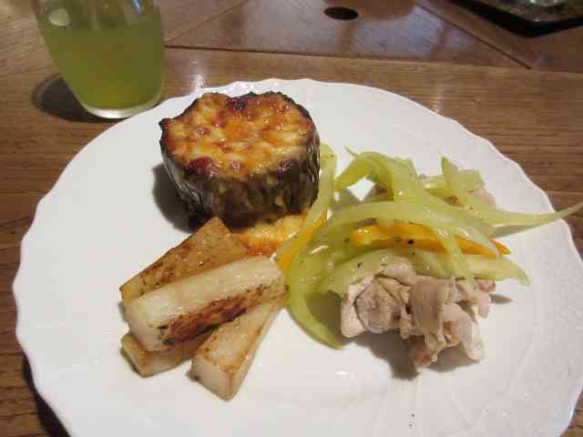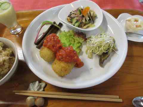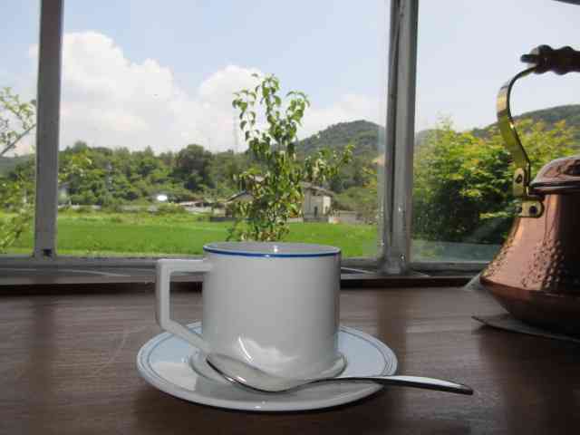 野葡萄のまだ青々と山のカフェ