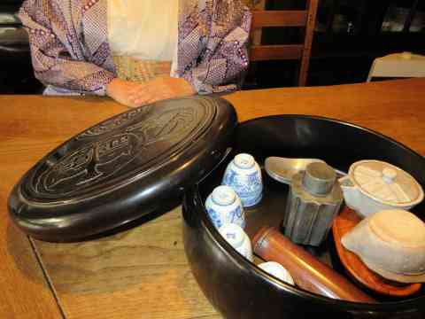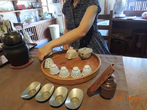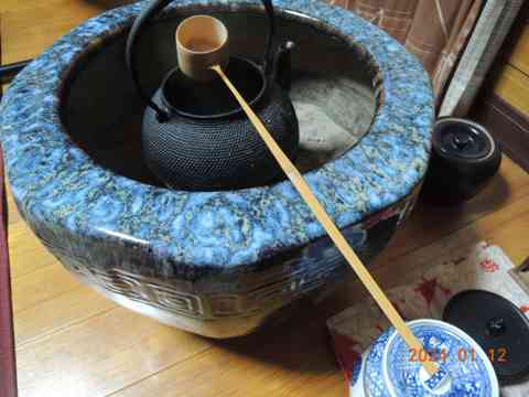 水差しにおほきな葉蓋朝茶の湯