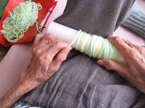 孫の手で転がりし糸とる夜なべ
