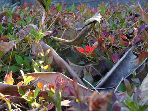 花は葉に三角コーン撤去され