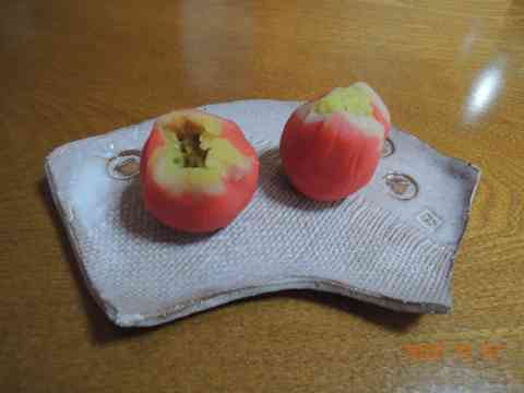 蜂蜜を水に溶かして林檎剥き