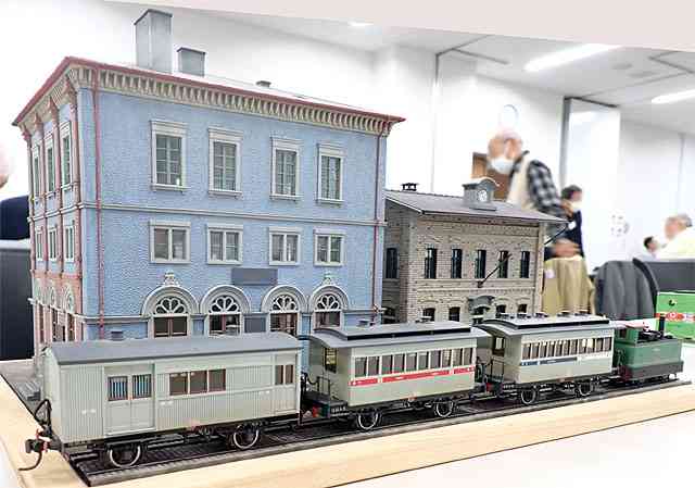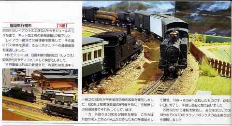 HOナローはコッペルの牽く混合列車と貨物列車を交互に運転しました。MRCのサウンドユニットを使って、汽笛やドラフト音もならして、臨場感を高めています。(鉄道模型趣味誌のレイアウトコンペで準佳作をいただきました。その盾も展示しました。)