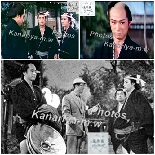 その場面が画像上の2枚でみられます。千代之介さんと加賀さんはここのところの演技に関して細かい打合せ中ですね(下の画像)、橋蔵さまは・・??