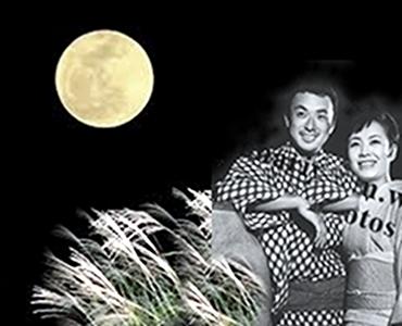 トミイとマミイが仲睦まじくお月見をしていらっしゃいます。とても素敵な笑顔のお二人です。ひばりさんとの橋蔵さまは、ほんとにいいお顔をしていらっしゃる・・そう思いませんか。