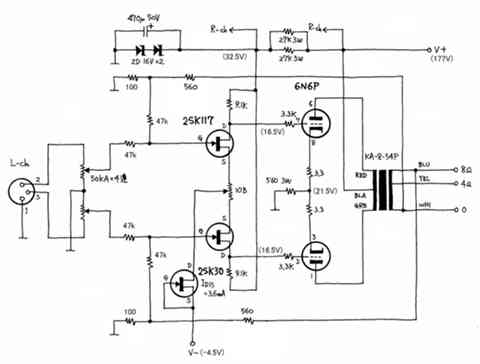 こちらの掲示板には大変お世話になっております。下図の平衡型6N6P全段差動プッシュプル・ミニワッターを使用していますが、高域の周波数特性を伸ばしたく、クロス中和を考えています。下図の上の2SK117のGと下の2SK117のDとを(下の2SK117のGと上の2SK117のDも)2~3pFのコンデンサで接続するようですが、使用するコンデンサの耐圧は何Vあればよいのでしょうか?またコンデンサはディップド・マイカが好ましいのでしょうか?よろしくお願いいたします。
