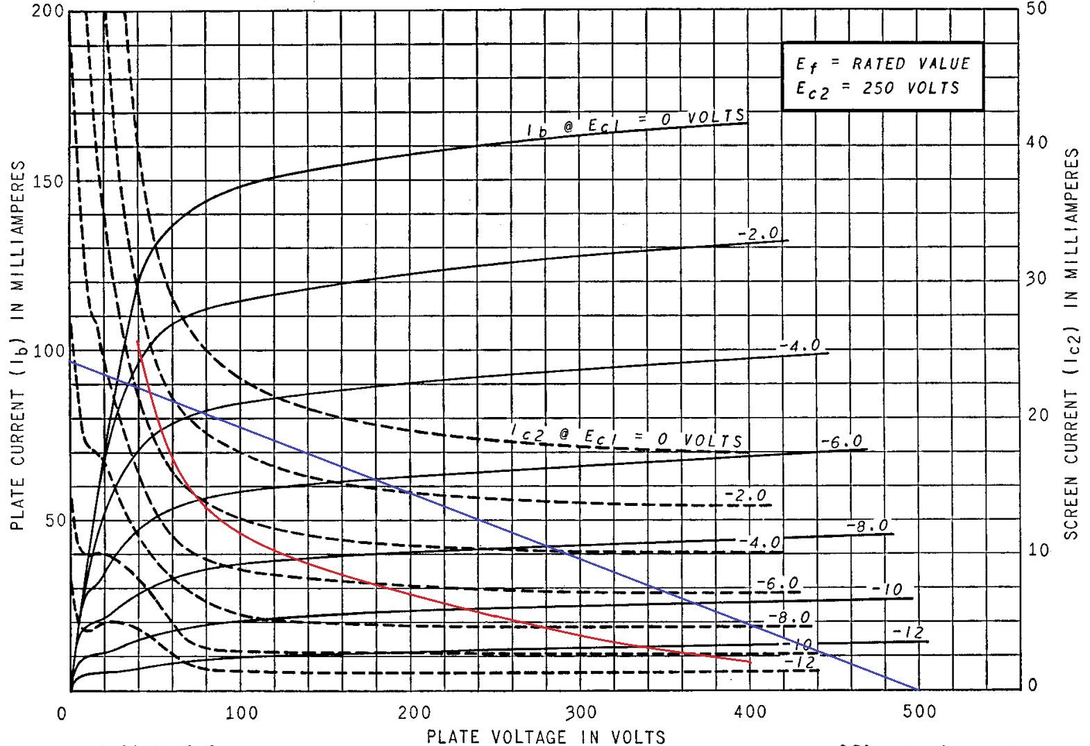 この図では破線で書かれたラインの一番上にIc2@Ec1=0VOLTSと書かれているように、破線がスクリーングリッド電流です。