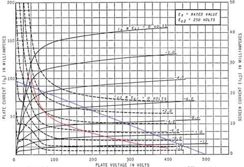 画像は一例としてGEの6BQ5のプレート特性図です。
