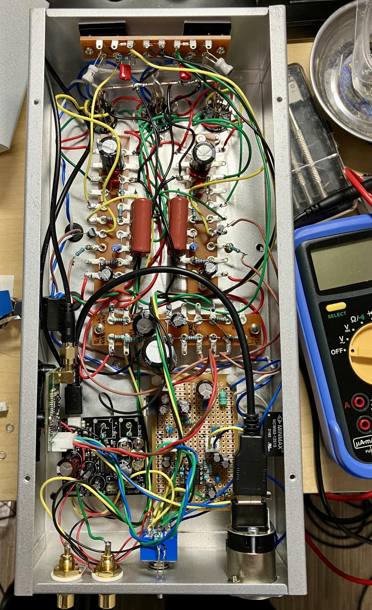 ノイズが0とはなりませんでしたが、自作基盤の部分に問題があるのだろうとは思います。これ以上お手を煩わせて申し訳ないのでこれにて完成としようと思います。