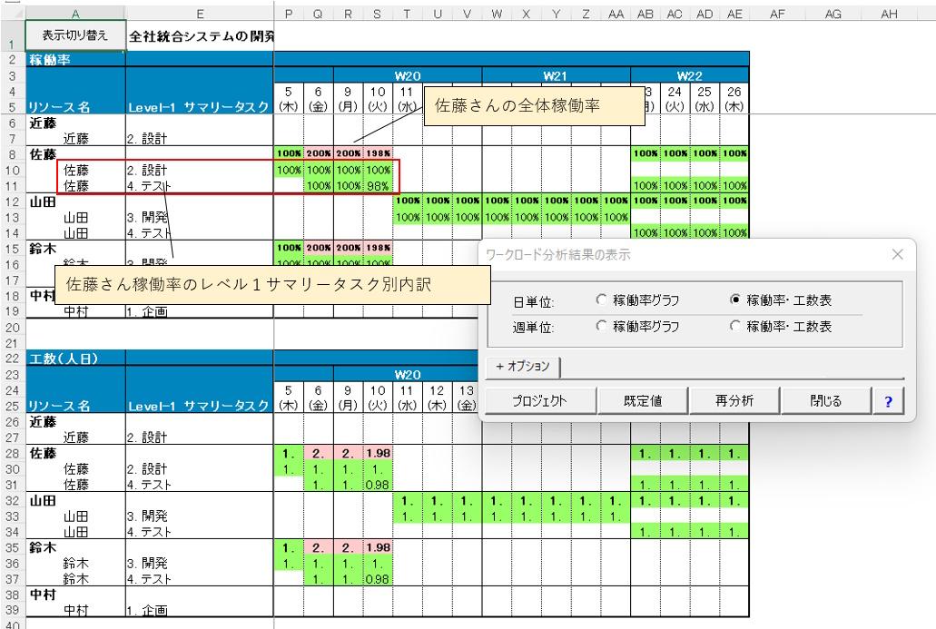 参照:ワークロード分析 page173: https://projectexceller.com/pxdoc/UserGuide2_JPN_2.079_250314.pdf#page=173