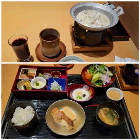 マゴヨシさんが投稿されたものと基本的に同一ですが、焼魚と刺身が違うのが面白いです。使うお皿や並び方も違うようです。