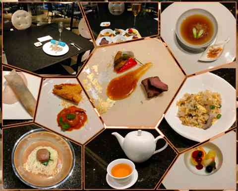今日のディナーは中国料理のスタンダードコースです。ソロ旅の為か、個室にアサインしてくれましたが、おそらくライトアップされていたであろう庭が見えないのが残念です。