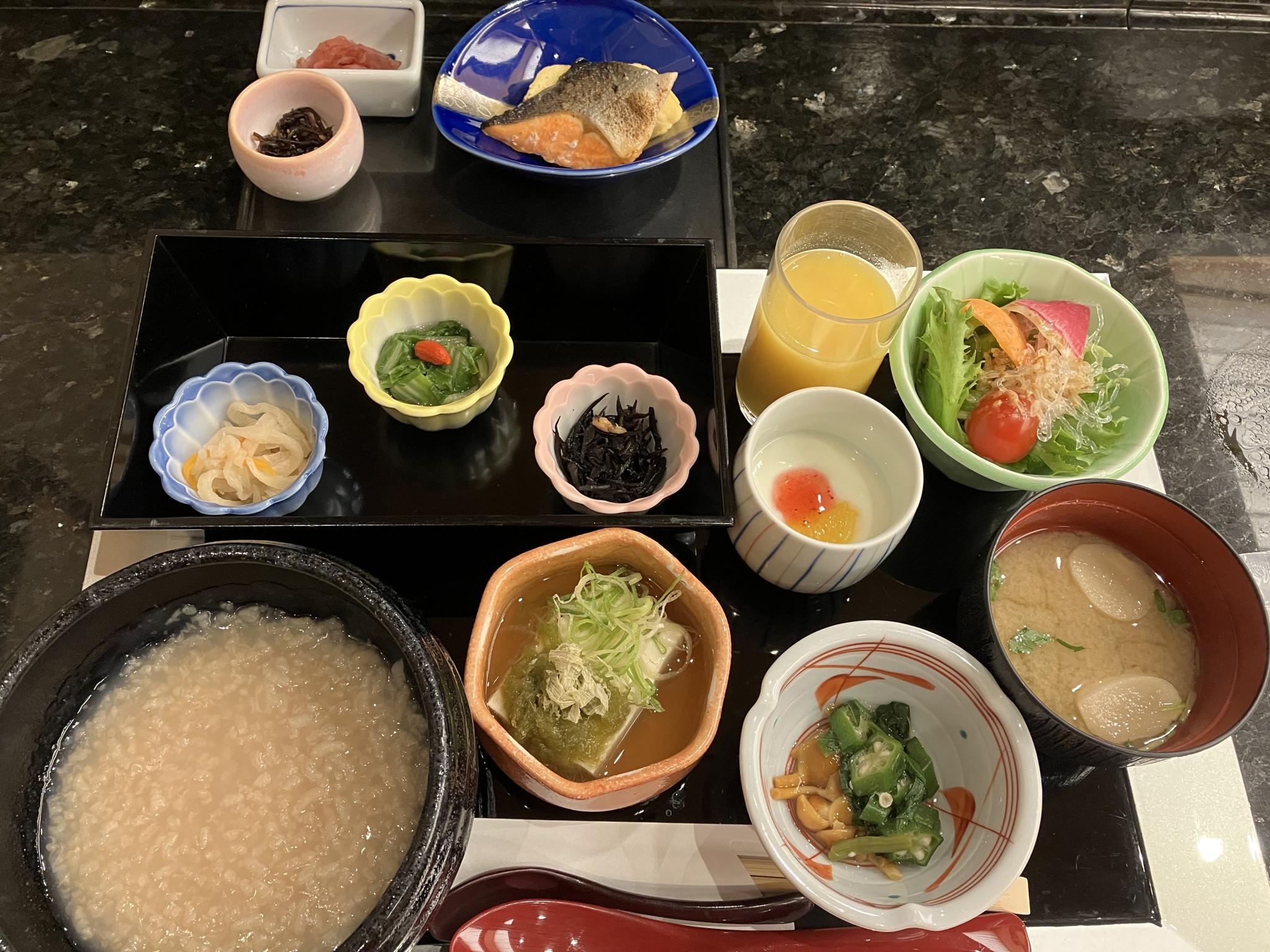 「京のおばんざいと京都嵯峨豆腐のはんなり茶粥膳」と名付けておられる通り、京都らしい(?)とても上等な朝ごはんでした。