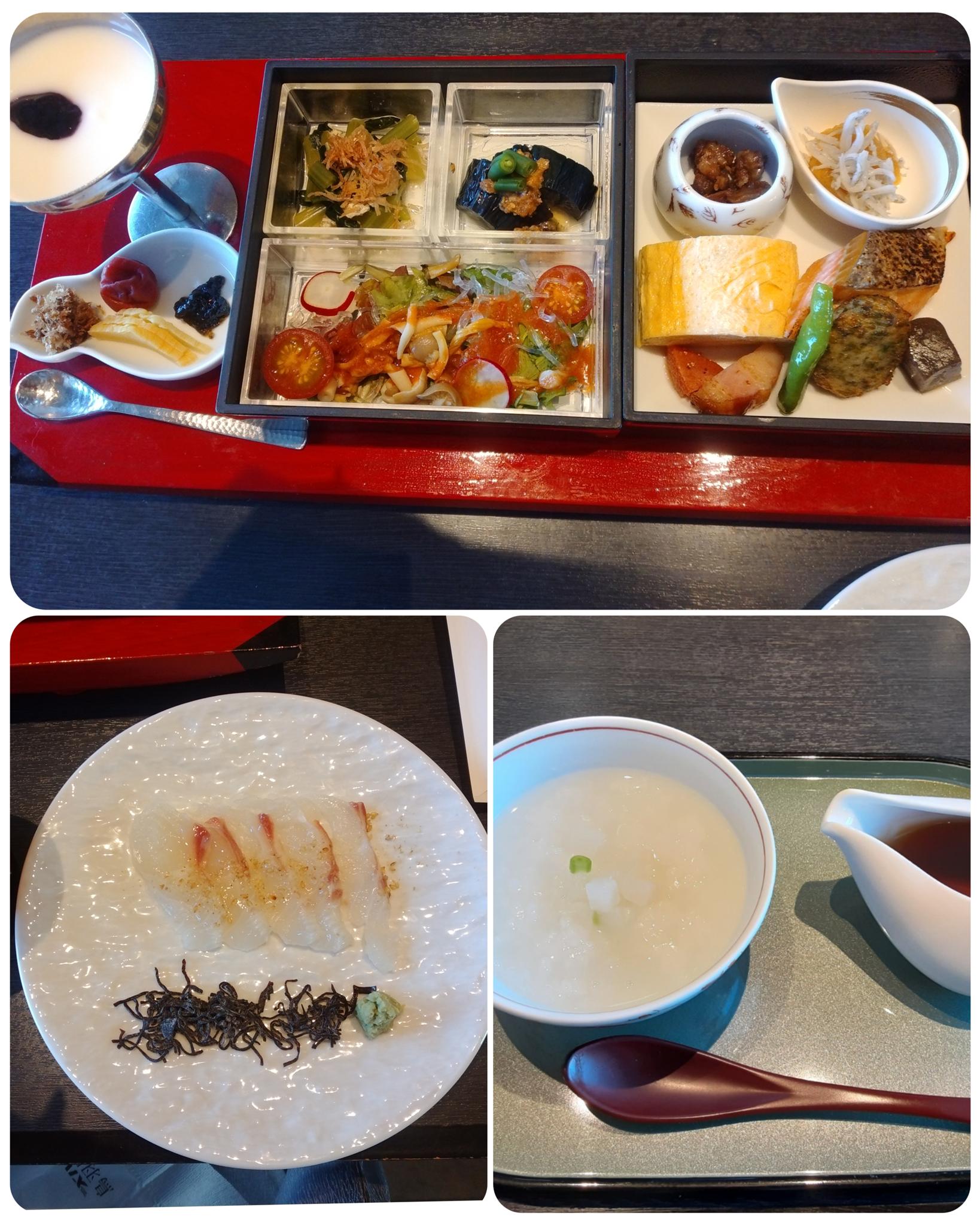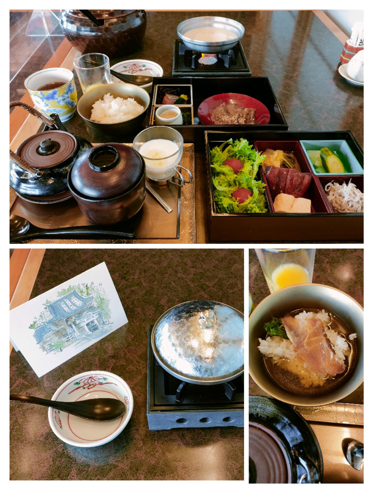 ご飯は白飯と今月の月替わり粥は大根粥。両方頂きたいと白飯少なめにとしたにもかかわらず、とろろと漬け鯛を出し汁でとお代わりし更には大根粥😁個人的には鯛は前夜に出されたお造りの方がよかったかと。