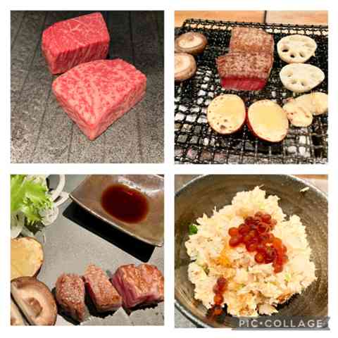 金目鯛、伊勢海老、佐賀牛は安定の味で言うことはありません。〆めのガーリックライスですが、油にニンニクの香りつけした後に生卵を使うのが面白いです。尖ったニンニクの風味が円くなってより美味しくなるように感じました。