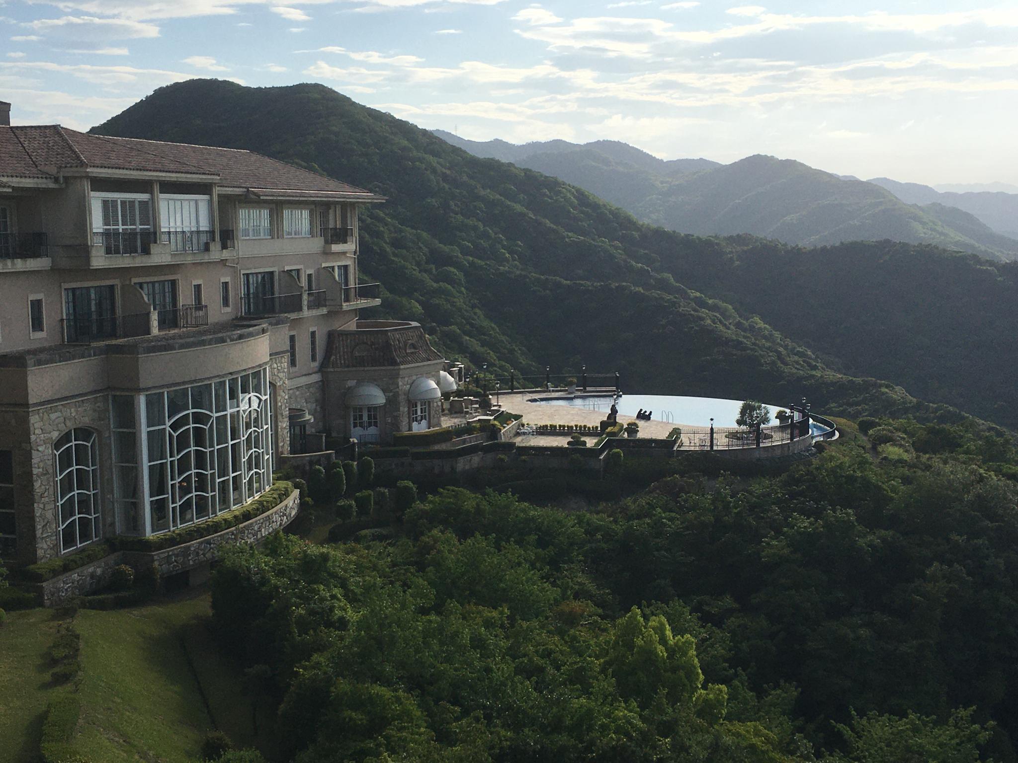 はい、見える建物の全てが敷地内なんです。本館から行くと先ずはアロマハウスが、次いでロッジ(ゴルフ場付帯サンメン施設)があって、その先に2棟のサンクチュアリヴィラ(SV)が峰の上にそれぞれ聳えています 🏰
