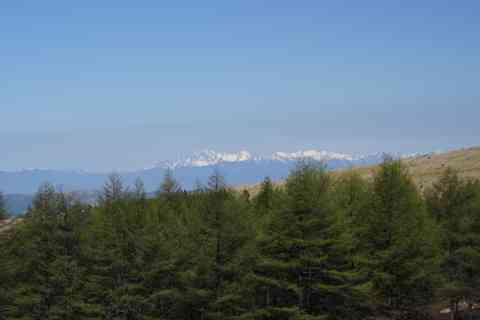 駐車場からでも北アルプスの南部、穂高と槍ヶ岳が見えます。
