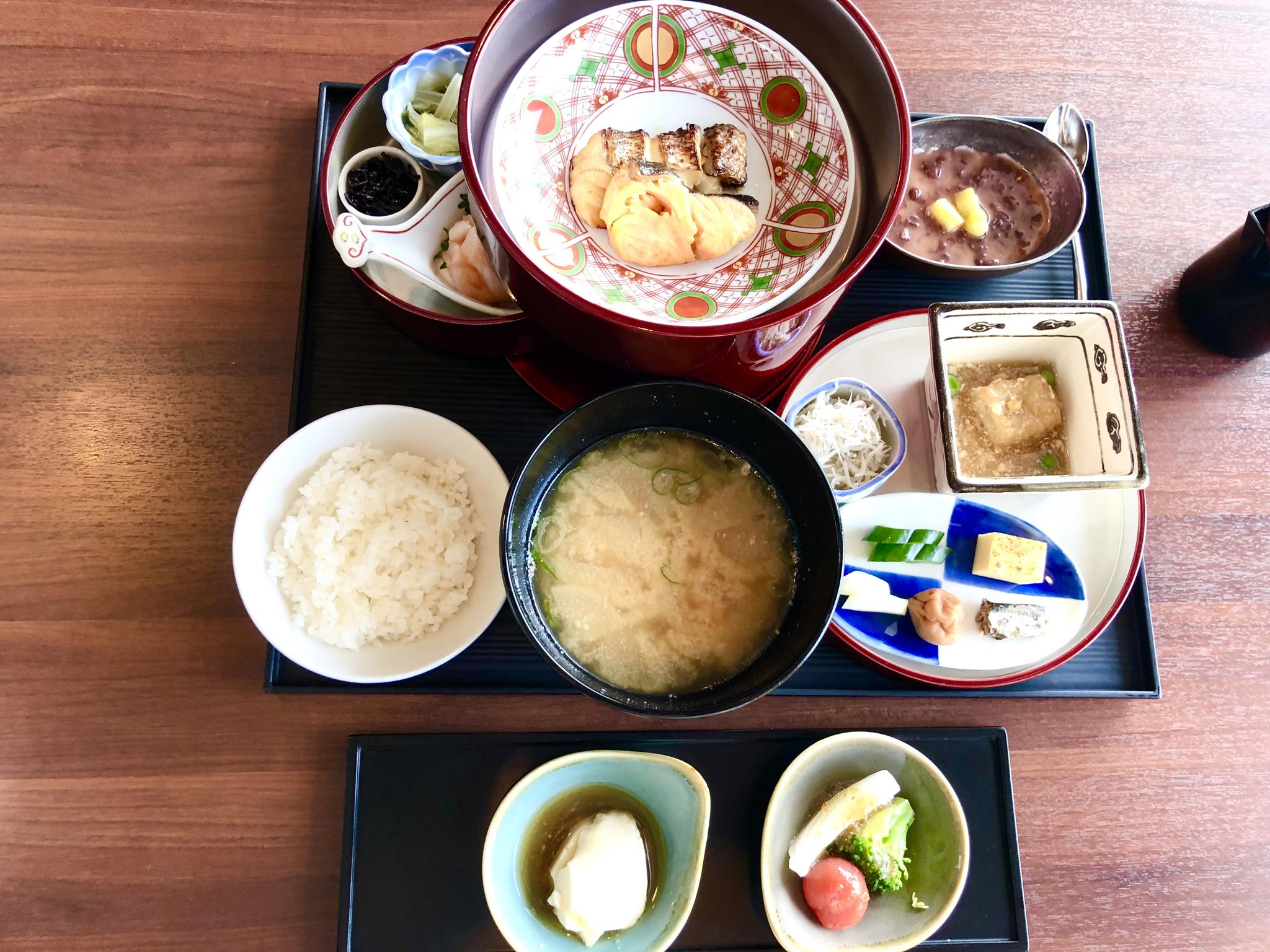 先日は粟餅ぜんざい(?)も付いてましたよね。朝から手の込んだものを頂けるのは、外食ならでは。家で朝から呉汁なんて絶対作りませんから😅