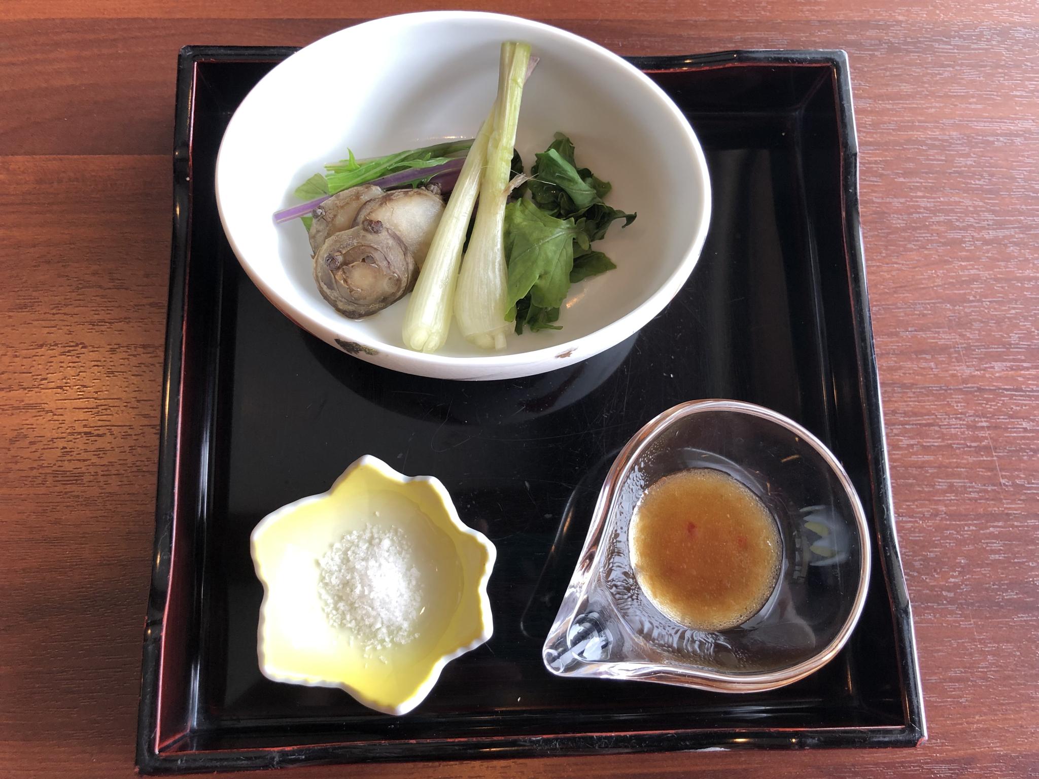 まずは温野菜、はなまる農園のキクイモ、エシャレット、ルッコラにハナミズナ。