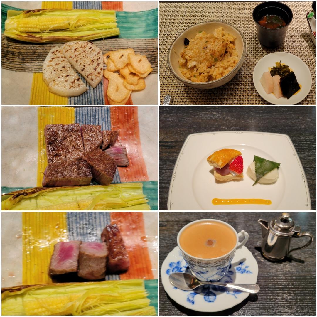 2日目の夕食は一遊の鉄板焼です。洋風コースです。魚はメバル、お肉はフィレとサーロインを食べ比べです。大満足の夕食になりました。