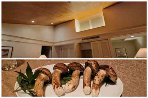 夕食は翆陽のスタンダードコース。1年前に予約したので旧価格のまま、オーナーデイで一人無料です。食事代がお得なので、1本税込4290円の松茸を追加して、3人でシェアして食べました。今年初で、こだわりの塩で食べるととても良かったです。