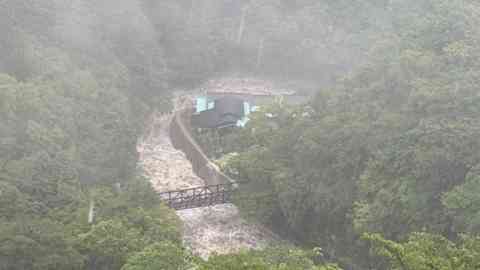 午前中は雨の紫陽花も悪くないと思っていたが、雨足がどんどん強くなり、早川渓谷は濁流に!