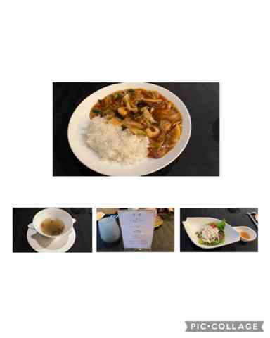 中華丼と言っても丼ではなくて皿にごはんと餡掛け野菜と海鮮の炒め物が載せられて出てきますが、定評のある伊佐料理長だけあって美味しくボリュームもたっぷりでした。