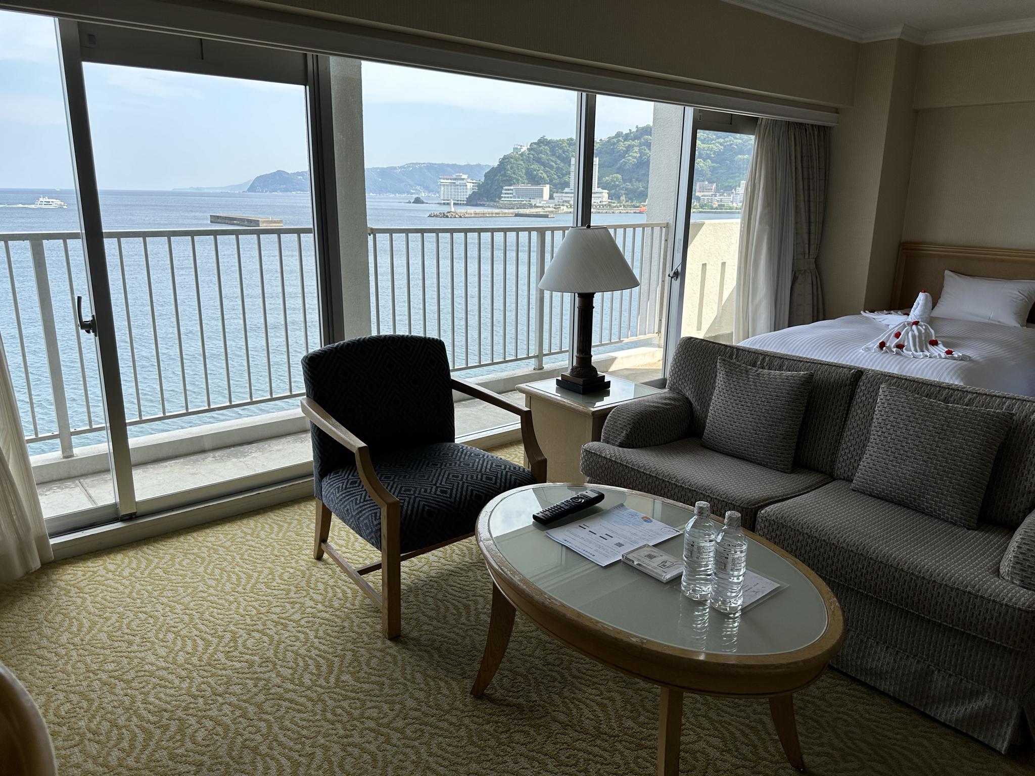 半年ぶりに泊まってきました。DXルーム2室利用でしたが、間口の広いベランダのガラス窓一杯に相模湾が広がって、それだけでリゾート気分が目一杯高まります。夕食は鉄板焼の極24、和食と鉄板焼の良いとこ取りです!