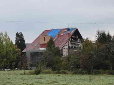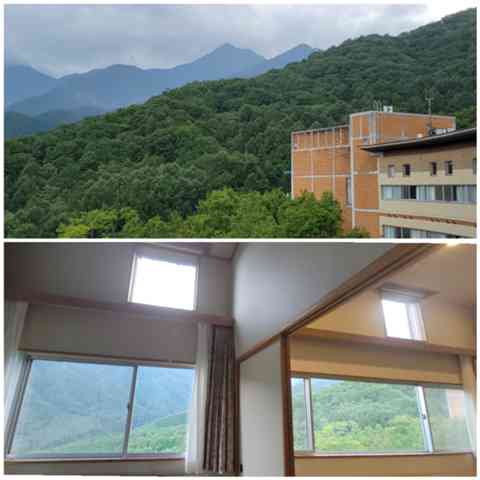 屋根の改修工事をしており、12月初旬までとのことです。西側の部屋(DXルーム等)の大日ヶ岳方向の眺望が遮られており、また、駐車場エリアが狭くなっているので、これから行かれる方はご留意ください。