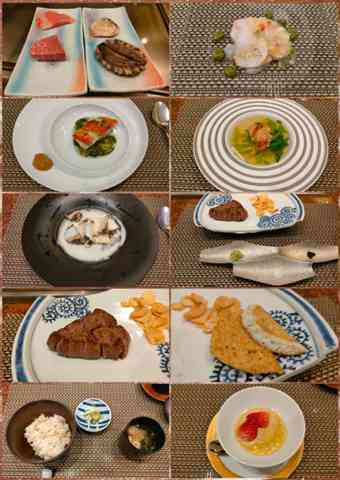 一日目の夕食はプリフィックスの長良を緑樹の旧料金でいただきました。更に長良を選んだサンメンバーズ会員には9月末までには新支配人就任記念でフリードリンクがサービスされて大満足です。