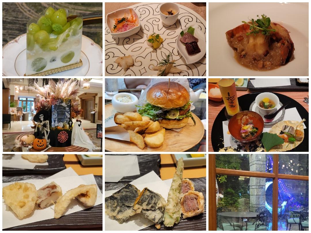 1日目の夕食は中国料理のスタンダード、2回の朝食は和朝食膳と旧料金を守るため、1年前の予約のままです。2日目の夕食は天ぷらを食べたかったので、新料金を享受しました。松茸、子持ち鮎、和牛の天ぷらはまた食べたい逸品でした。やっぱり軽井沢はラウンジが気軽に利用できてとても落ち着きます。なぜか鯛バーガーがあったので、鳴門に続いて食べてみましたが、とても良かったです。