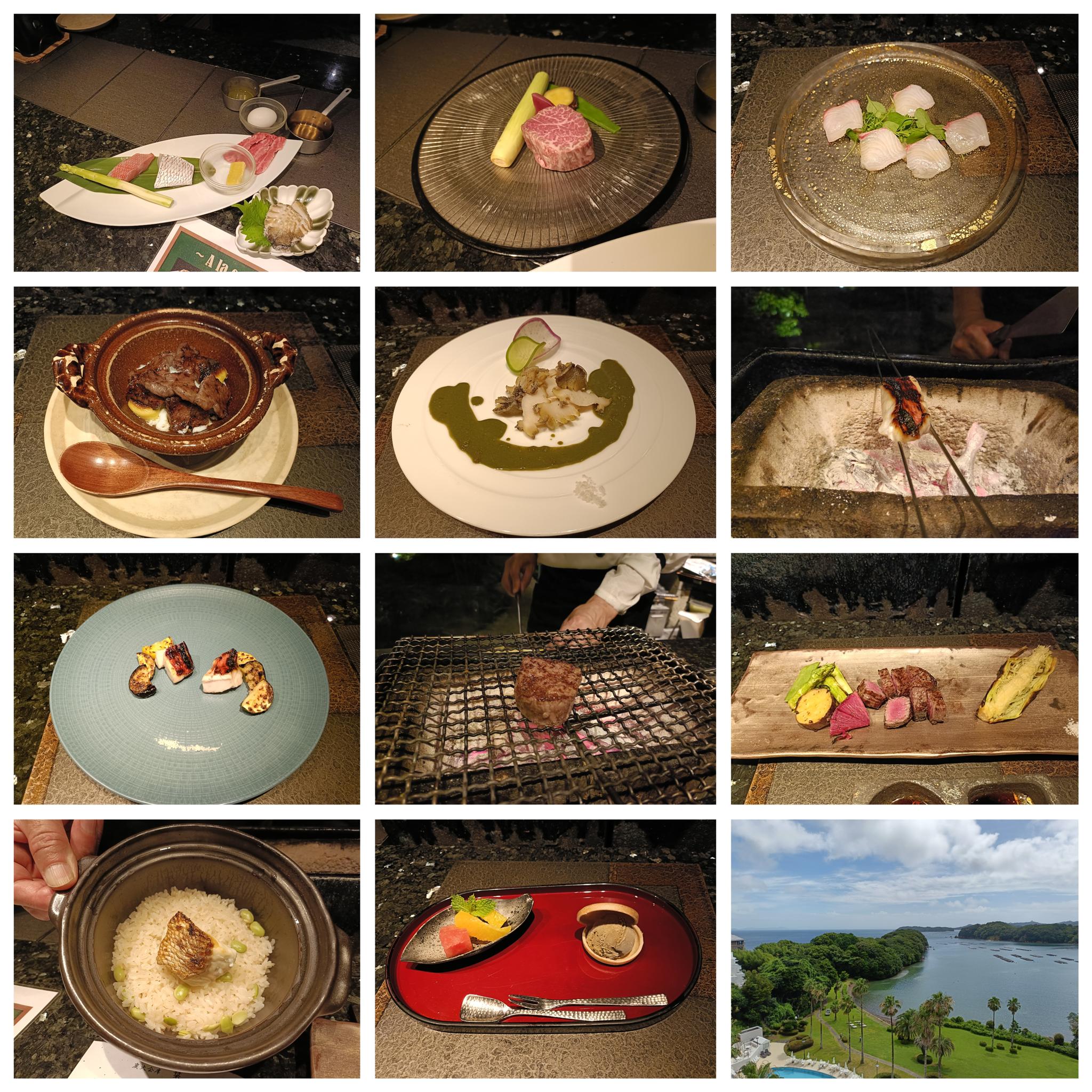 2泊目の夕食は鉄板焼です。オマール海老と黒毛和牛のコースです。オーマル海老とお肉のポーションがリゾートトラスト系のものより大きいのが特徴です。ただ、焼野菜が椎茸と蓮のみという割り切りが凄くて、色彩的に映えないのは欠点かも。それぞれ特徴があっていいです。
