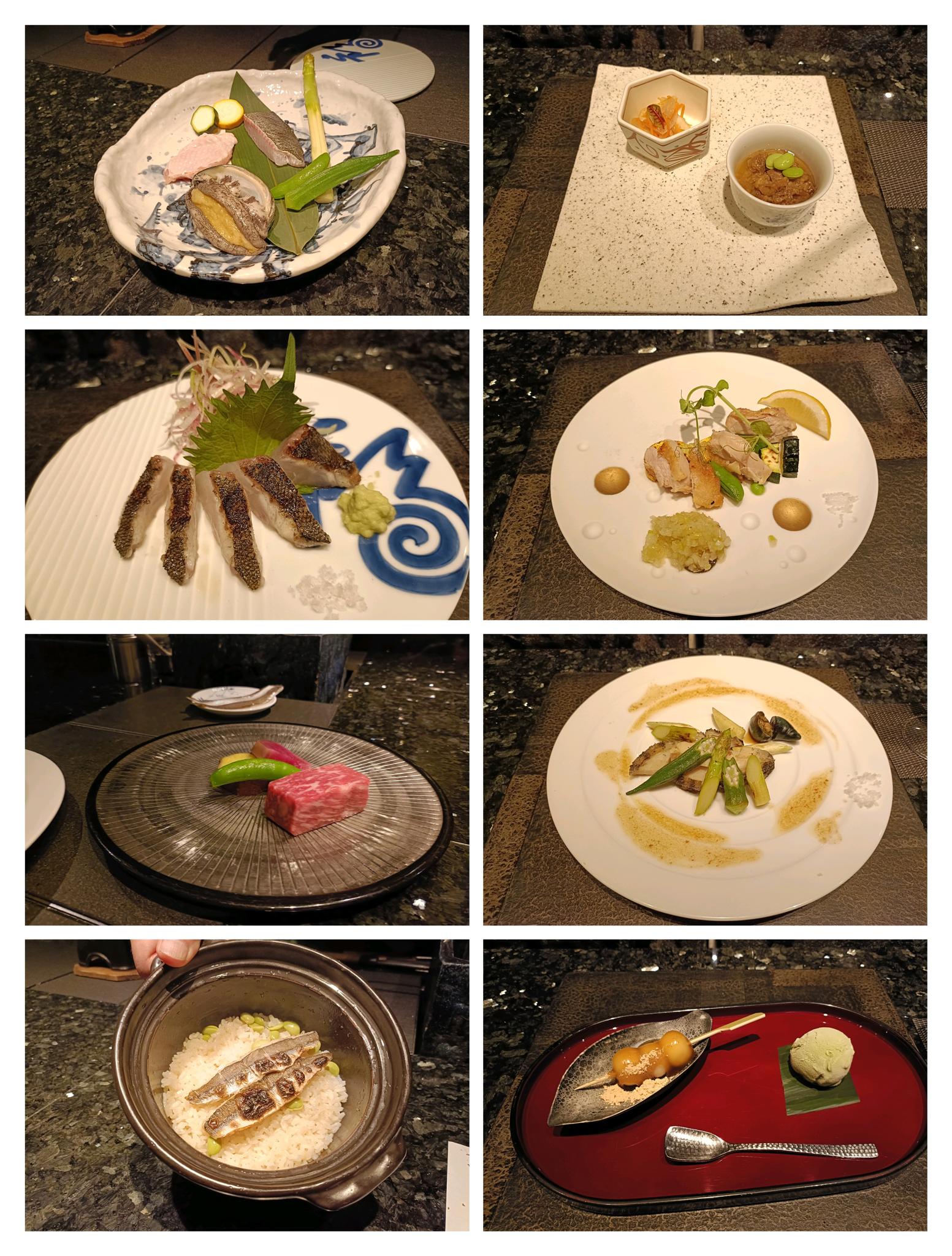 一日目の夕食はプリフィックスの長良を緑樹の旧料金でいただきました。更に長良を選んだサンメンバーズ会員には9月末までには新支配人就任記念でフリードリンクがサービスされて大満足です。