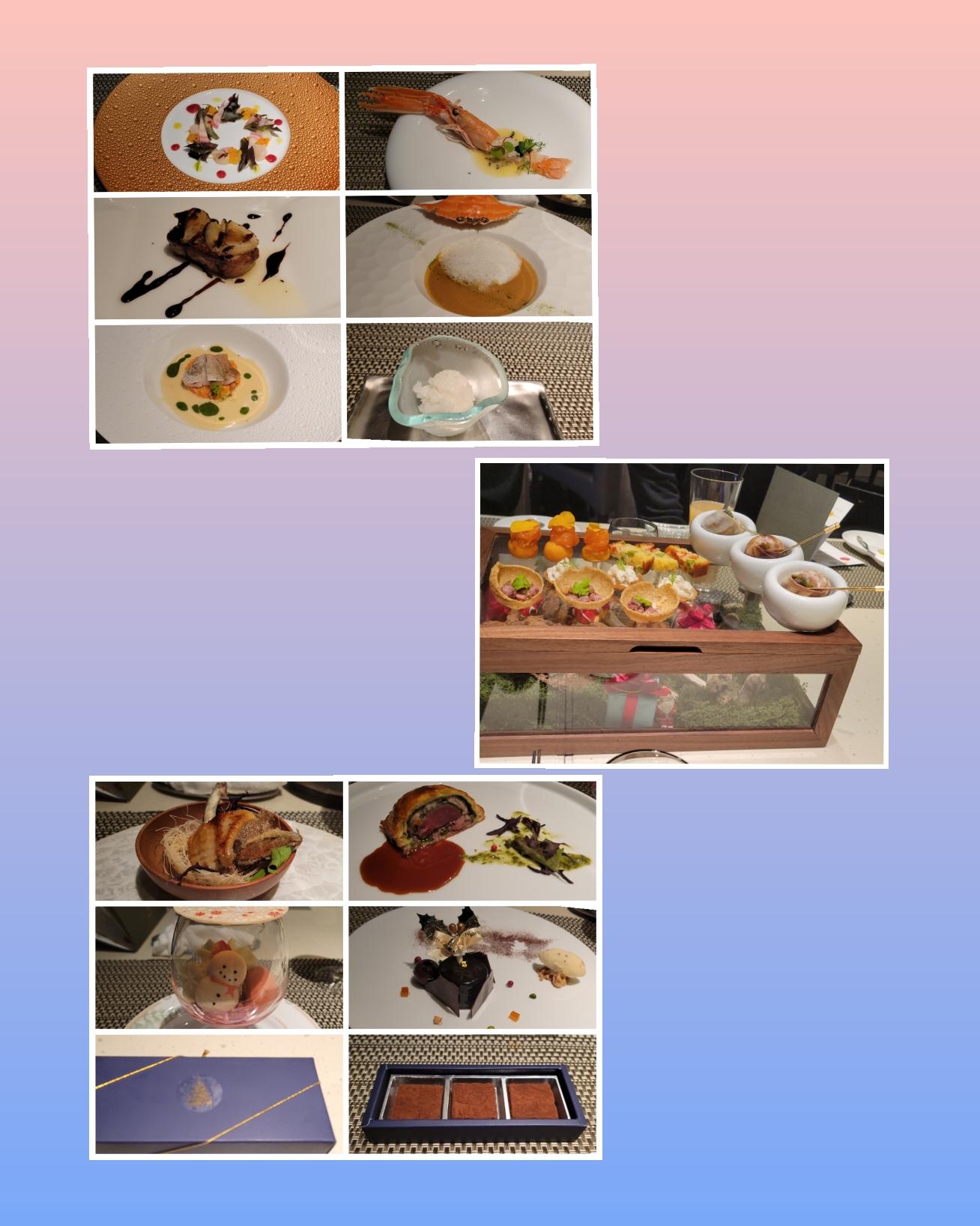 1日目の夕食は平日にもかかわらず、鉄板ビュフェがあったので、鮑付きのものにしました。フリーフローのシャンパンに合うオードブルが多く、満足でした。金目鯛のグリルや豚の角煮も美味しかったです。
