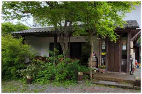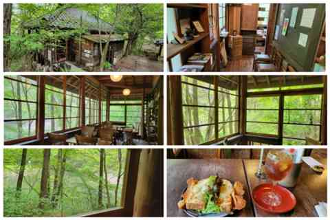 緑一杯の美しい古民家、絵になります。ピザトーストにアイスティーのランチです。
