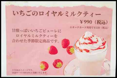納得です。抹茶ラテ以外にもいちごのロイヤルミルクティーも同じ値段であっておすすめかもしれません。