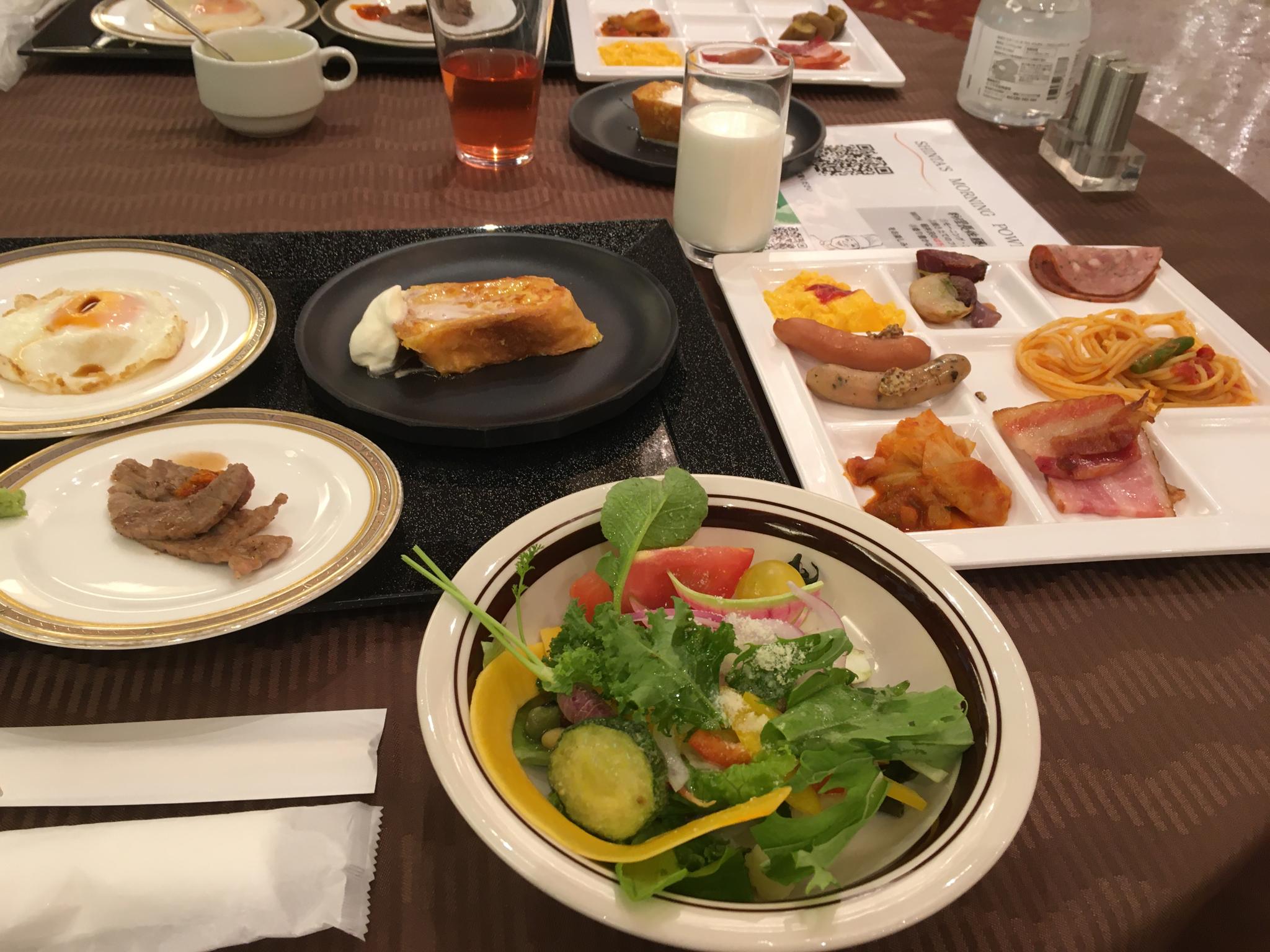 写真は朝食ビュッフェで、野菜もおいしく、蜂蜜おじさんの蜂蜜で味付けされてフレンチトースト最高でしたが肉は少し固かったかな。