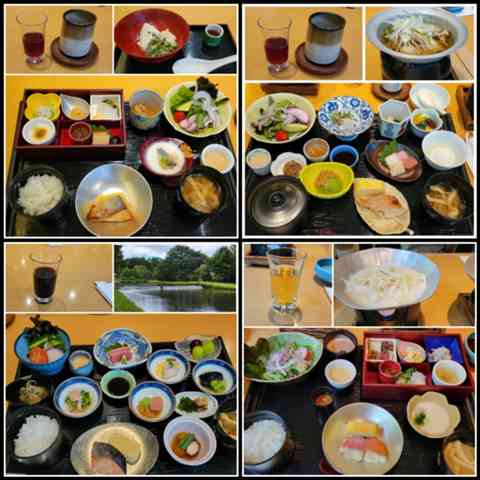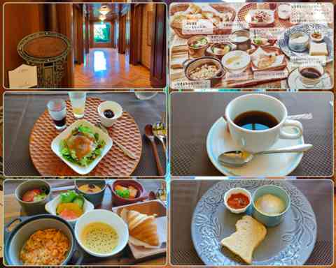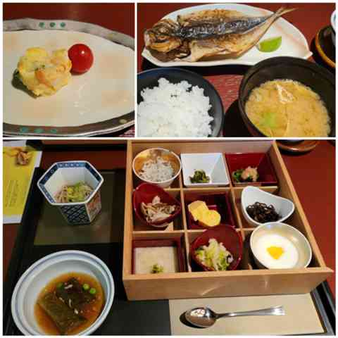 > 今回は和朝食膳は1、3、4日目に頂きました。左上、右上、左下の順です。参考の為、6月に頂いたものを右下につけておきます。
