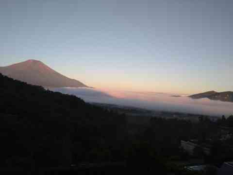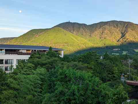 今朝の箱根の乙女峠です。月が左上に残ってます。