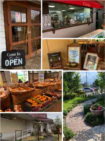 > ココラデ、テラスで緑と山を眺めながら、ゆっくりと楽しめますよ。裏の板でフドウさんから牛乳パンを薦められたのですが、開店30分くらいで売り切れるようなので、まだ味わったことがありません。