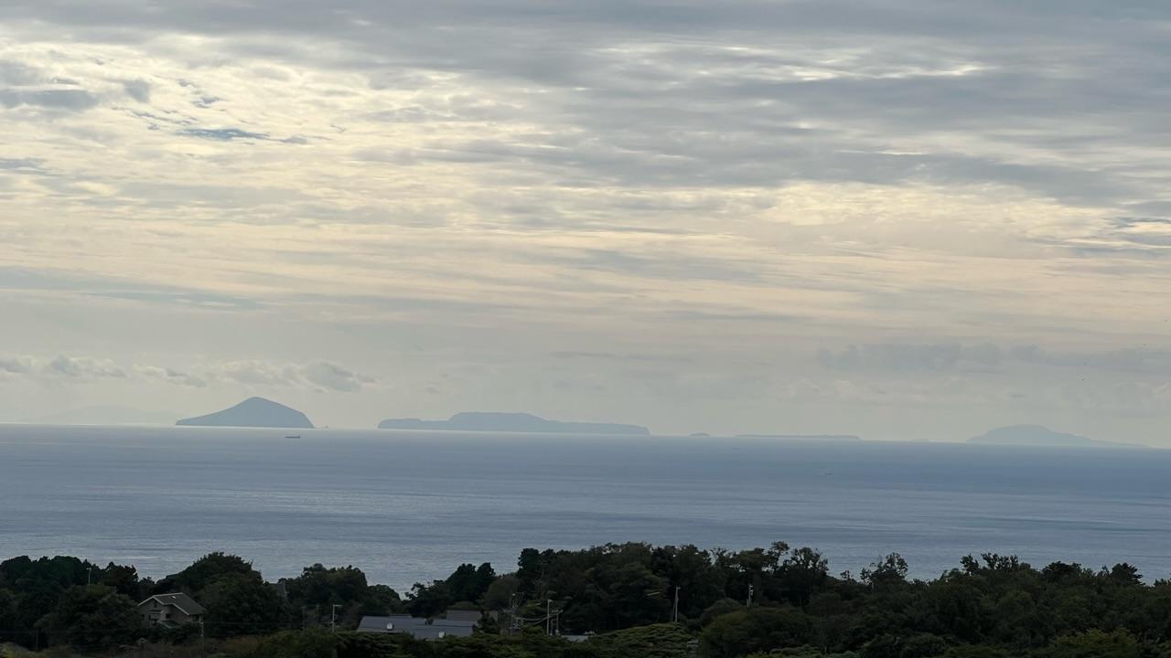 ちょっと違和感ありますが、三宅島は利島の左側に、御蔵島は式根島と神津島の間に薄らと見えます。