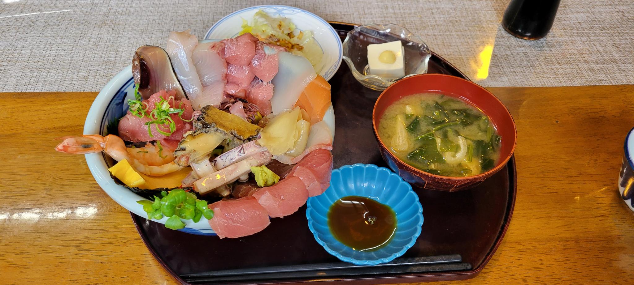 今日のランチは忍野村の旬鮮道場にしました。1000円、1200円、1500円の海鮮丼で、ご飯の量を大、中、小から選べます。