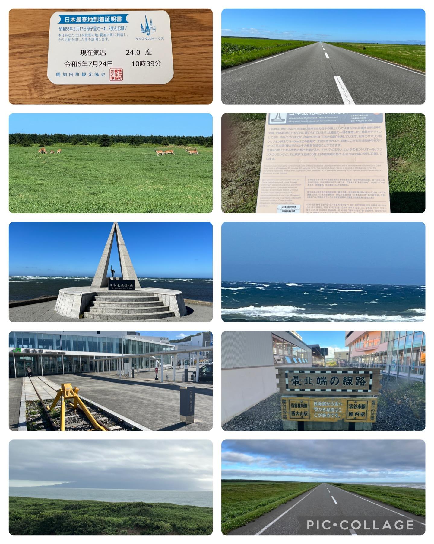 無事日本最寒地到達証明書を貰ってオホーツク海沿いに宗谷岬を目指しますが、途中猿払村の村道エサヌカ線は延々と左右に何も無い一直線の道が続いて気持ち良いです。