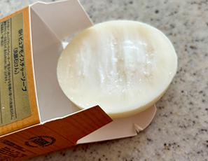 丸いものも平たくなっていく消耗品だし、平たい石鹸が二つと思えば、不良品案件にはならないのかも...ですが、この石鹸、以前はスクリュータイプの蓋付きプラスティックケースいりで、商品自体もビニール(のようなもの)で、ピッタリつつまれて、取り出すのが手間でした。