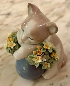 数年前の地震で陶磁器、クリスタル製品は随分壊れたし、安くはない割れ物をわざわざ海外で買うつもりはなかったんですけど、(本気で欲しかったらオンラインでも買えるし)ホテルの客室が清掃中で、それじゃちょっと散歩がてらリヤドロのショップを見てこようかと外に出て、見に行ったらそりゃ記念に何か買うでしょうよということですよね。スタッフにちっちゃい猫が欲しいと伝えて、2階に案内してもらって見つけたのがお昼寝子猫。