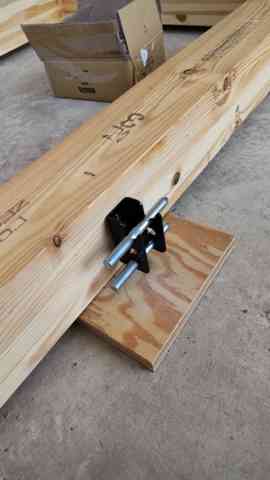 土台に柱を立ててピンを打ち、梁を持ち上げてピンを打てば完成です。梁材を持ち上げる腕力さえあれば助っ人と二人で一日で組み上がります。