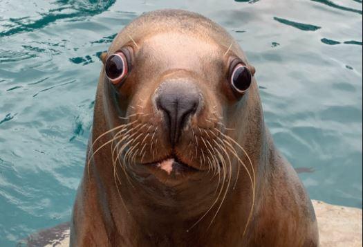 違いは眼鏡だけで地上をのたうち回っている点までそっくりです(写真のトドの方が余程かわいい顔をしている)。