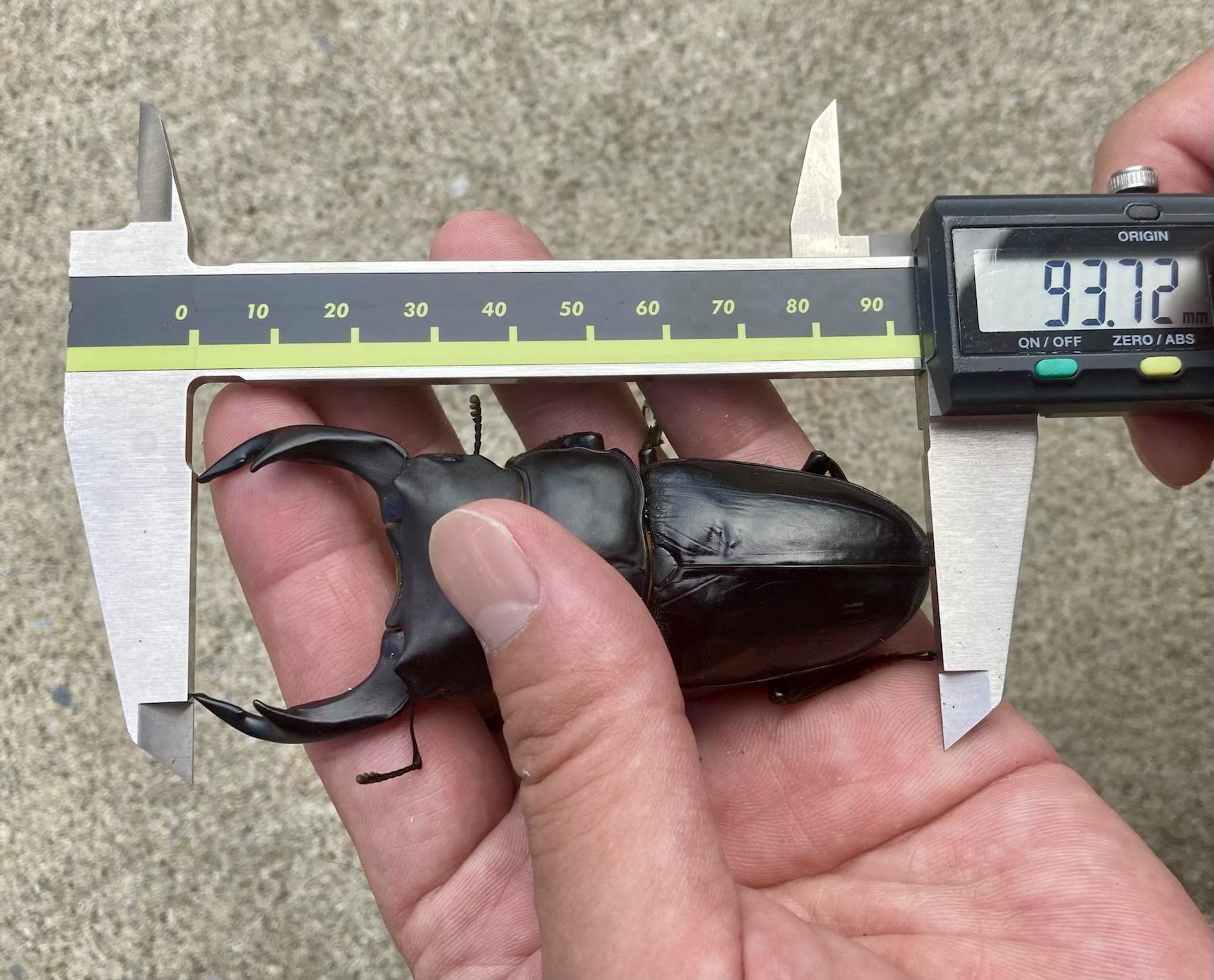 ※サイズは素人計測ですので多少の誤差はお許し下さい。(体長は大顎が開いた状態での最大値で計測しております。前胸背板から頭部がお辞儀した状態で、大顎が開いていない状態ですと、-2~3mmの誤差は生じるかと思われます。)素人計測とご理解頂ける方のみ、ご購入をお願い致します。