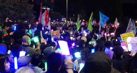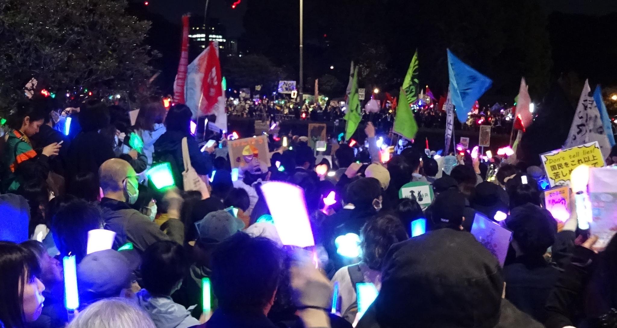 4月8日、国会前は3万人の人々が集まり、ペンライトの光の洪水でした。最近見たことがないほどの人数で、若い人、女性が多い。「戦争反対、憲法守れ、高市辞めろ」と一緒に声を上げてきました。集会の主催は「WE WANT OUR FUTURE」と「9条壊すな実行委員会」で、国会前集会を開催して4回目、急速に参加者が増えています。2月27日3600人、3月10日8000人、3・19の総がかり行動は11000人、3月25日24000人、そして今回が3万人です。全国各地駅前など150か所で勝手連的に4万9千人が声を上げたといわれています。マスコミも取り上げています。「WE WANT OUR FUTURE」は女性を中心にした、平和・人権などを掲げた市民団体です。